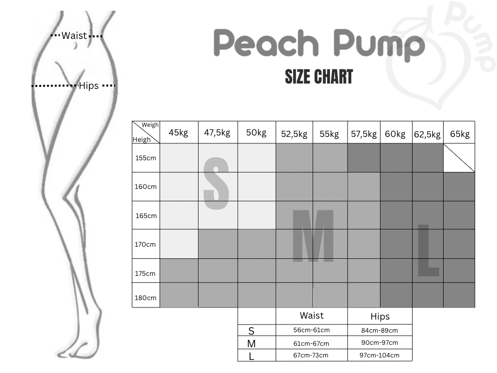 - Tepelný potisk loga Peach Pump na zadní straně legín