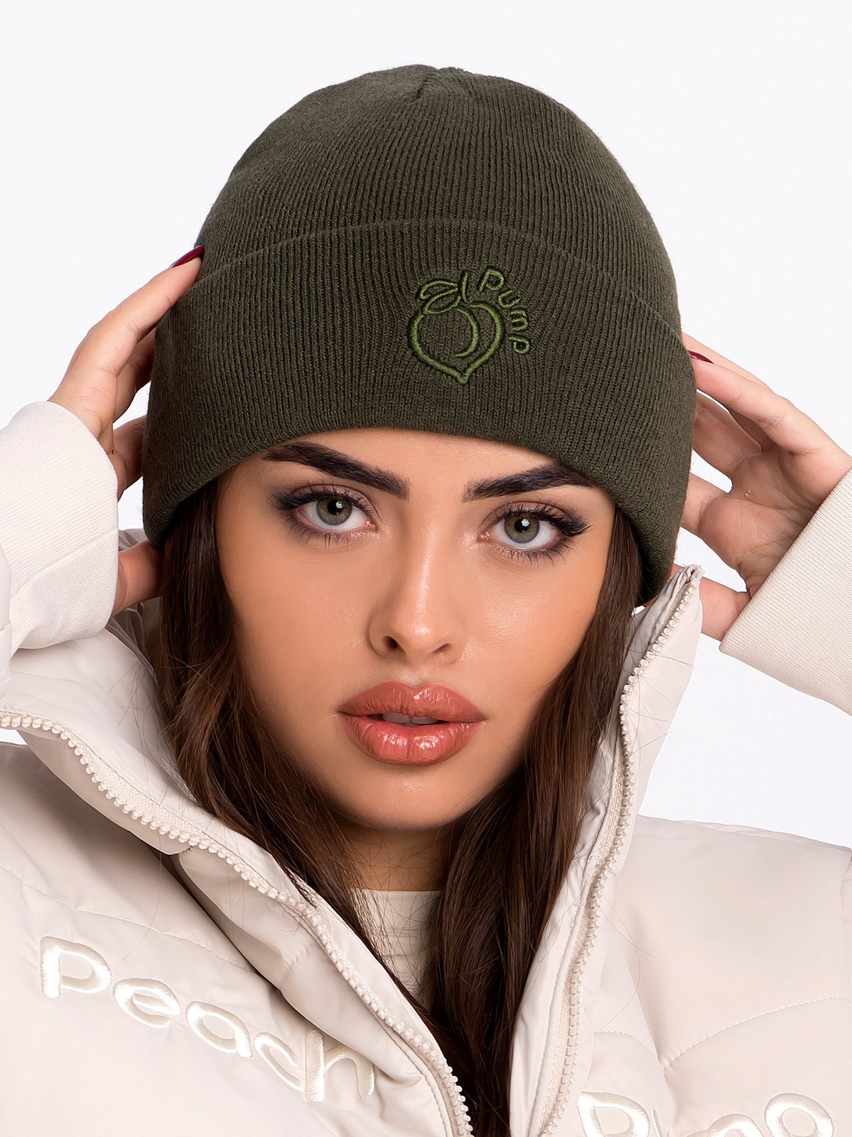 Tmavě zelená zimní čepice z kolekce Peach Pump s vyšitým 3D logem vpředu. Čepice má elastické provedení z mimořádně měkké a na dotek příjemné tkaniny. Přehyb ve spodní části dále chrání před prochladnutím. Čepice je k dispozici v různých barvách aktuální na tuto sezónu. Tento model bude dokonaloým doplňkem vašeho outfitu v chladných dnech.