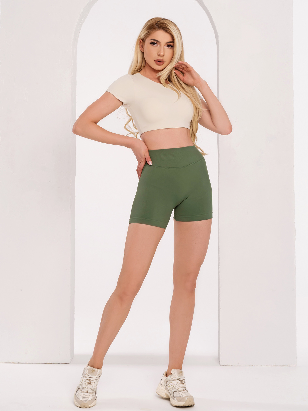 Bež, boja “Slonovače” sportska bluza s podstavom uz tijelu. Savršeno pristaje, a njen kroj čini je neizostavnim dijelom i sportske, i svakodnevne odjeće. Prikladna je za fitness, trčanje, aerobne vježbe ili šetnju parkom, ima skrivenu gumici na donjem kraju, uklonjivu podstavu i materijal koji ne zadržava vlagu u tijelu. Majica ima toplinski zapečaćeni logo „Peach Pump” na ramenu, koji je minimalistički i nježno prianja. Zaljubit ćete se u ovaj model i način na koji pristaje Vašem tijelu. Savršeno se slaže sa svim našim modelima kratkih i dugih tajica.