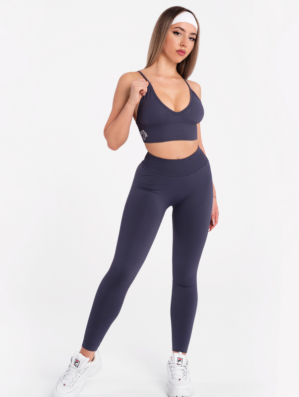 Varrás nélküli kékesszürke leggings, sűrűn szőtt, varrás nélküli, rugalmas és puha anyagból készült. Ez a modell tökéletesen formálja a testet, és alacsonyabb derék vonallal rendelkezik. Az anyag eltakarja a problémás területeket, elvezeti a nedvességet a testtől és barack alakúvá formálja a feneket a szebb és elegánsabb sziluettért. Ezzel a modellel kényelmesen és magabiztosan érezheti magát. A modell összeállítható ugyanabból a mintából készült sportmelltartóval, vagy saját sportos megjelenést alkothat, ami kitűnik és különbözik gazdag gyűjteményünknek köszönhetően, amely dzsekiket, sportmelltartókat és kiegészítőket tartalmaz.
