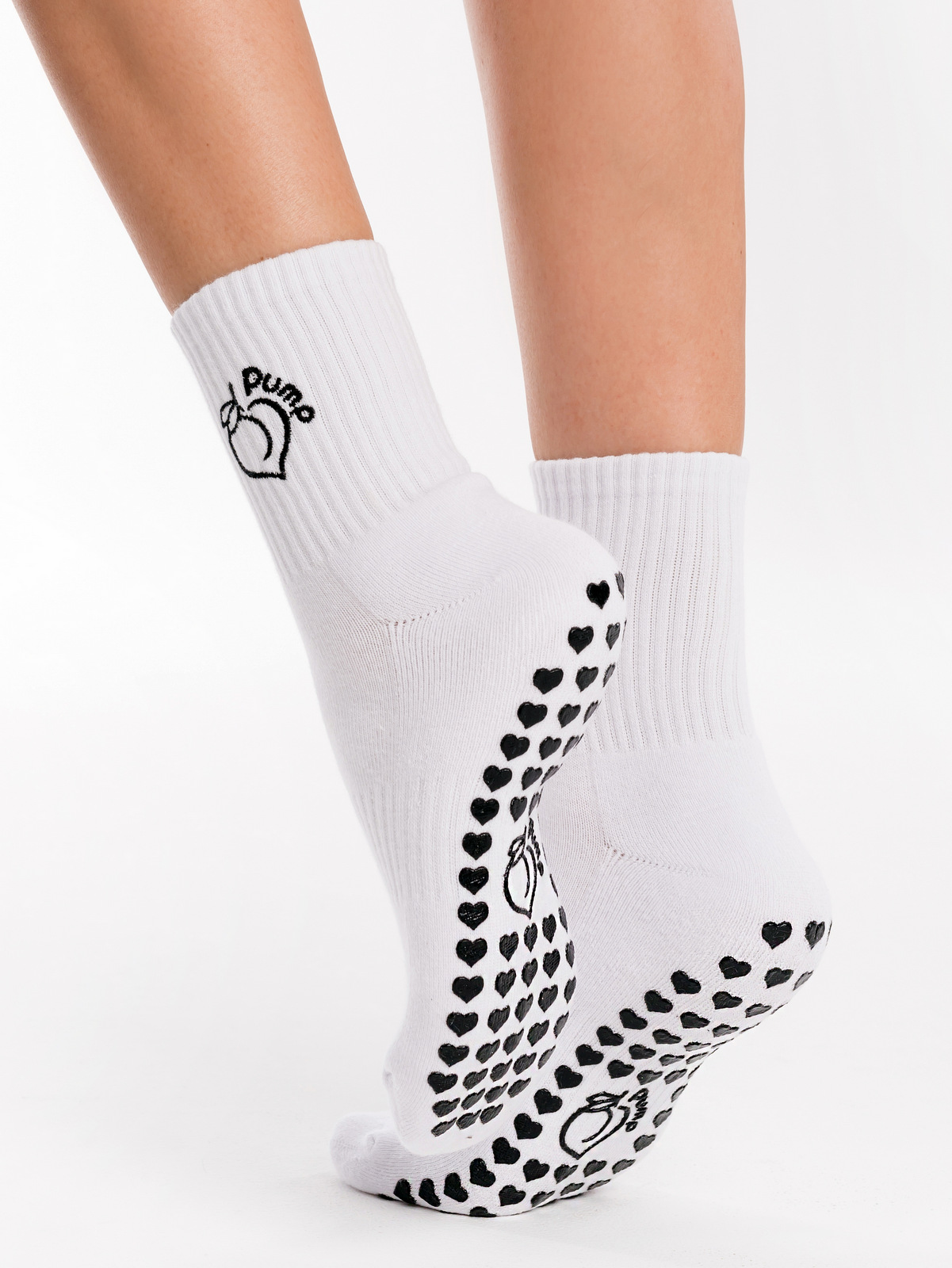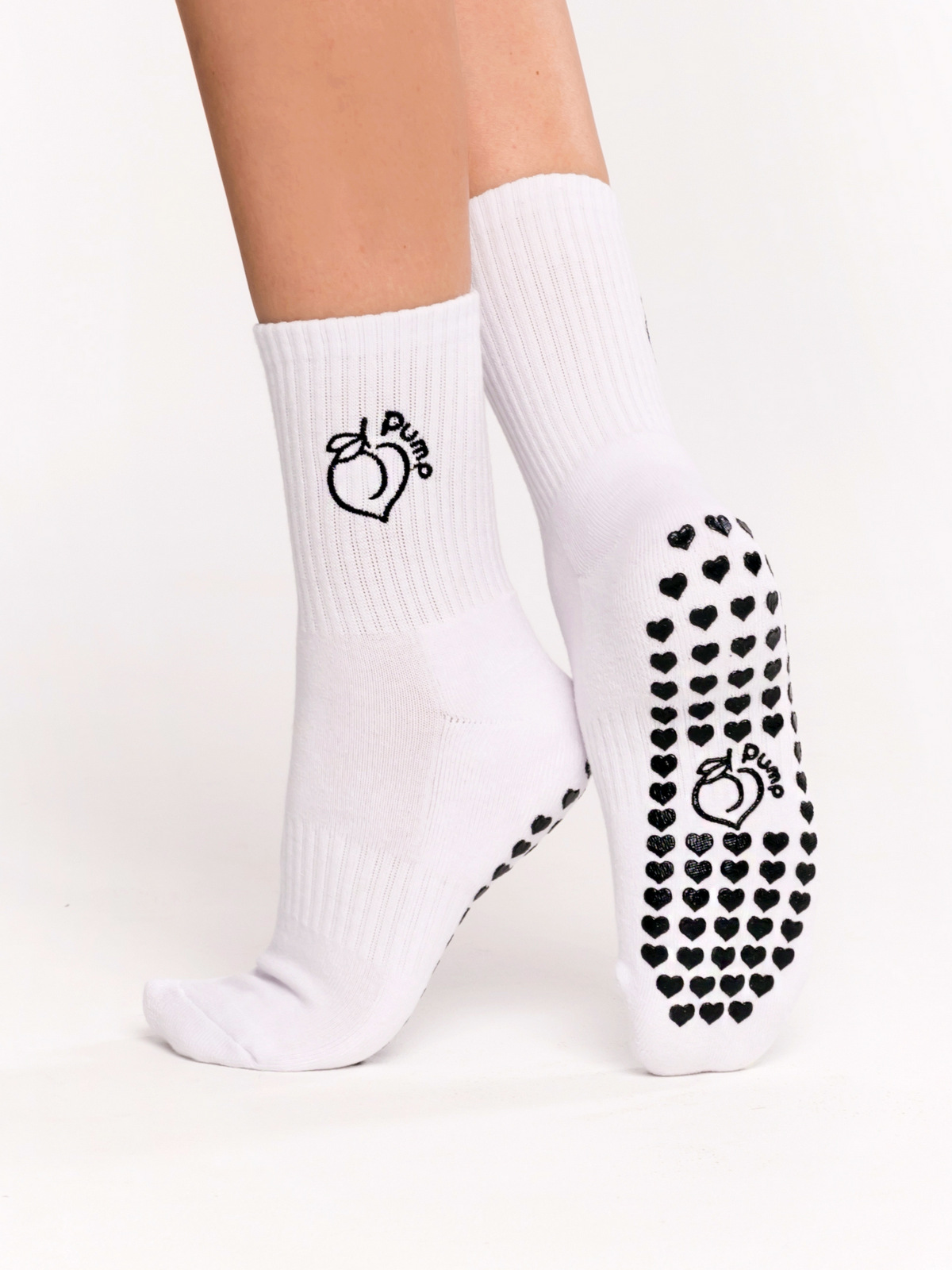Białe sportowe skarpetki z czarnym antypoślizgowym wykończeniem Peach Pump.
