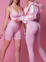Sportowe, damskie, krótkie legginsy damskie typu “biker shorts” w jasnoróżowym kolorze wykonane z bezszwowego, elastycznego i miękkiego w dotyku materiału. Model ten doskonale modeluje sylwetkę, posiada szeroki pas z grawerowanym napisem “Peach Pump”, który delikatnie ściąga talię. Materiał ten ukrywa problematyczne obszary, odprowadza wilgoć z ciała i ma elementy, które modelują pośladki w kształcie brzoskwini, zapewniając piękną i zgrabną sylwetkę. Z tym modelem poczujesz się komfortowo i pewnie. Możesz dopasować legginsy do stanika w tym samym wzorze lub sprawić, że Twój własny strój sportowy będzie wyrazisty i inny dzięki naszej szerokiej kolekcji kurtek, staników sportowych i akcesoriów.