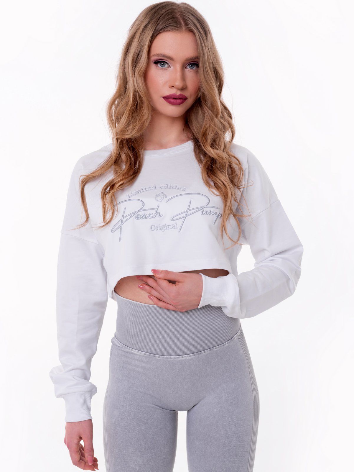 Krótka, biała, sportowa bluza z haftem Peach Pump