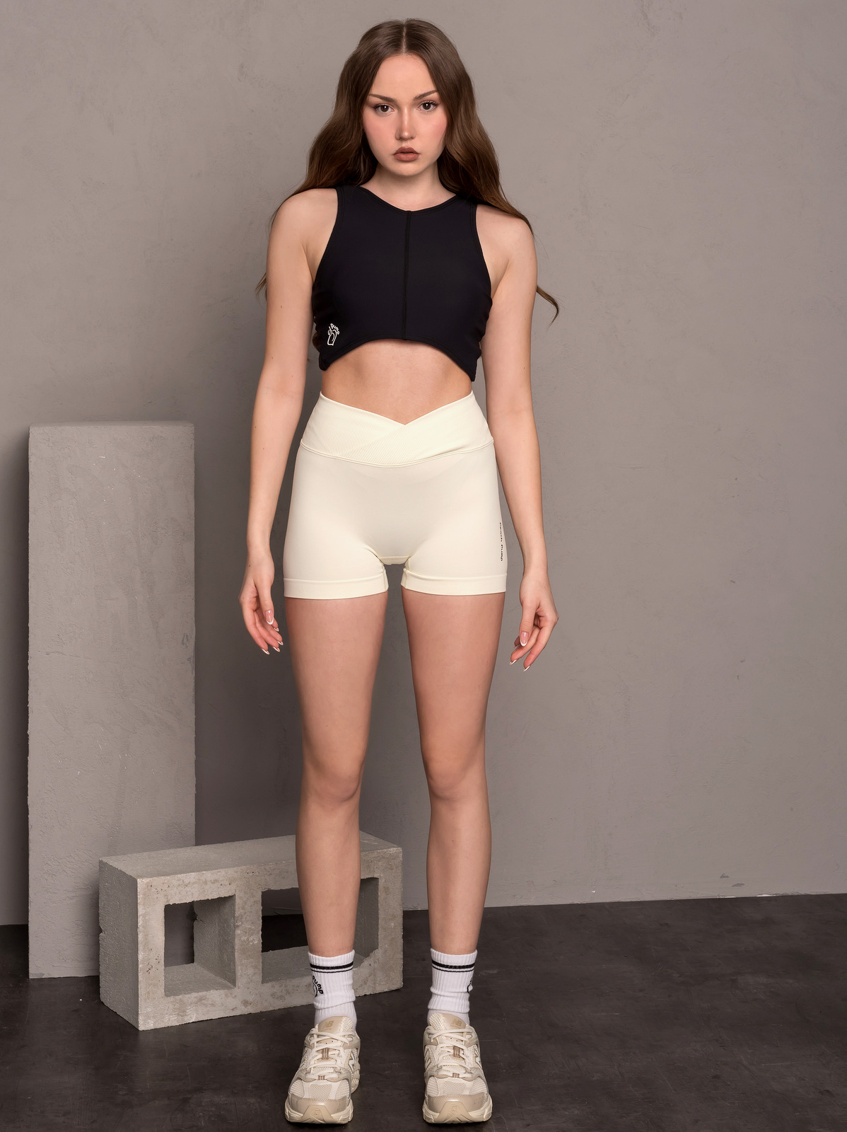 Czarny damski podkoszulek z wyjmowanymi wkładkami. Tkanina modelu jest prążkowana z delikatną podszewką i ma nowoczesny design, wycięty z przodu i z tyłu. Nadaje się do treningu lub wypoczynku, zapewnia pełną swobodę ruchów i seksowny wygląd. Dostępny w dwóch kolorach białym i czarnym.