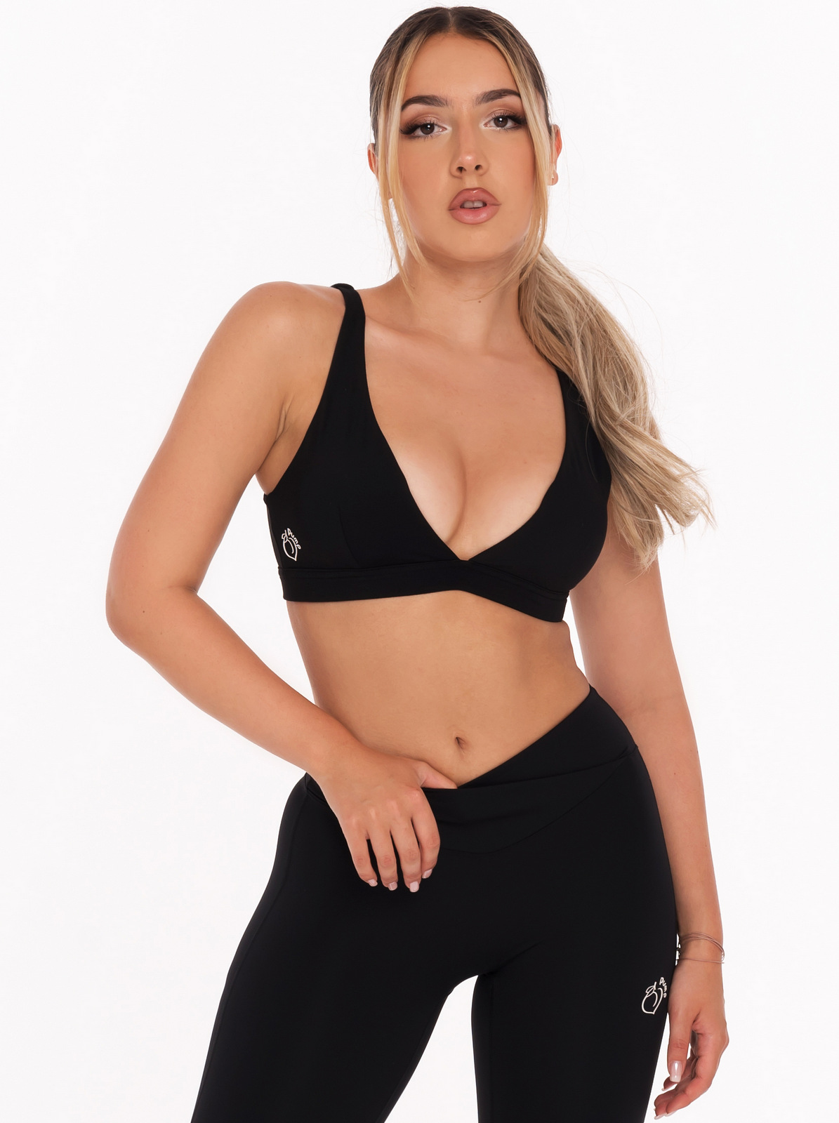 Спортно черно бюстие с дълбоко V деколте и подплънки, които могат да се махат. Моделът е направен от мека, много еластична, дишаща материя, която извежда влагата от тялото. Бюстието е със секси V дизайн идеален за летните горещи дни, може да се носи и под дрехите, като ще остане незабележимо, а вие ще чувствате комфорт и свобода на движение. Предлага се и в черен цвят.