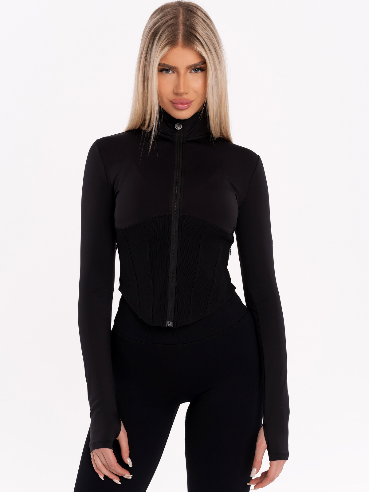 Čierna športová mikina priľahlá po tele typu korzet