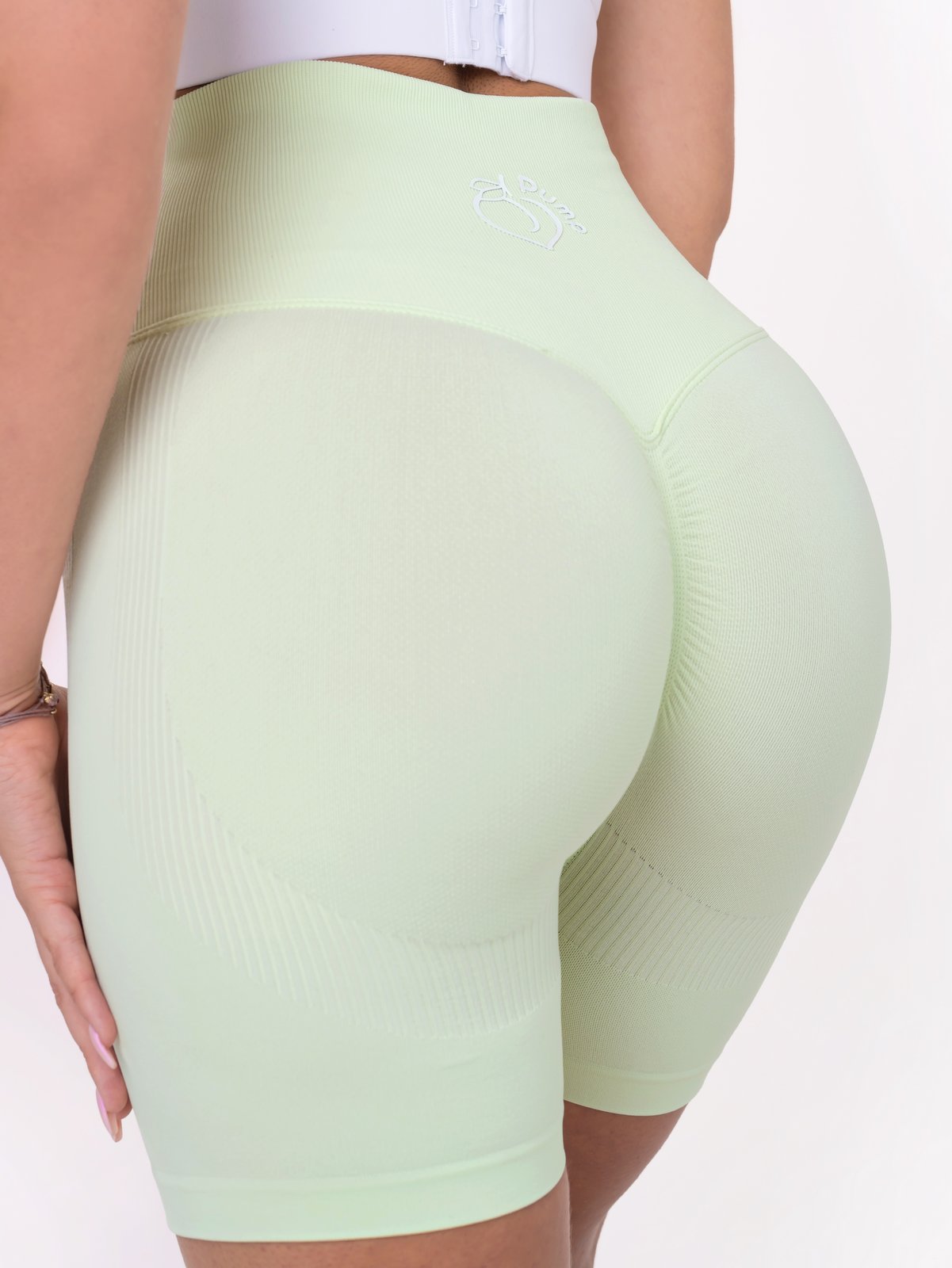 Športové dámske krátke legíny typu “biker shorts” v svetlozelenej farbe “Limetky” vytvorené z bezšvovej, elastickej a na dotyk jemnej tkaniny. Tento model dokonale tvaruje telo, má široký ripstopový opsok s vytlačeným nápisom “Peach Pump”, ktorý jemne sťahuje pás. Látka legín zakrýva problematické partie, odvádza vlhkosť od tela a má prvky, ktoré tvarujú broskyňový zadoček pre krásnu a pôvabnú siluetu. S týmto modelom sa budete cítiť pohodlne a sebaisto. Legíny môžete zladiť s podprsenkou v rovnakom vzore alebo si môžete vytvoriť svoj vlastný športový outfit, ktorý bude výrazný a odlišný vďaka našej širokej kolekcii mikín, športových podprseniek a doplnkov.